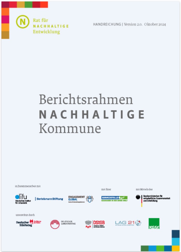 Die Handreichung zum neuen Berichtsrahmen Nachhaltige Kommune (BNK) wurde im Oktober 2024 veröffentlicht und kann kostenlos heruntergeladen werden. Der vom Rat für Nachhaltige Entwicklung bereitgestellte BNK wurde von einem breiten Kreis von Partnern entwickelt. Er unterstützt Kommunen dabei, den Fortschritt der nachhaltigen Entwicklung vor Ort mess- und damit steuerbar zu machen.